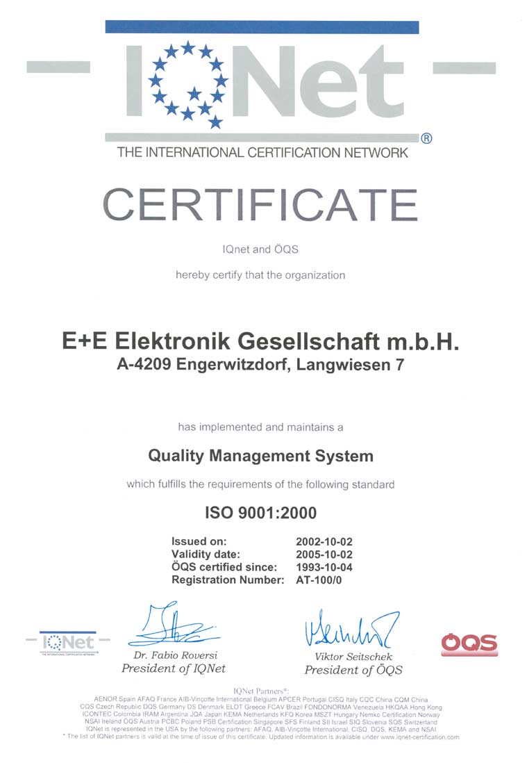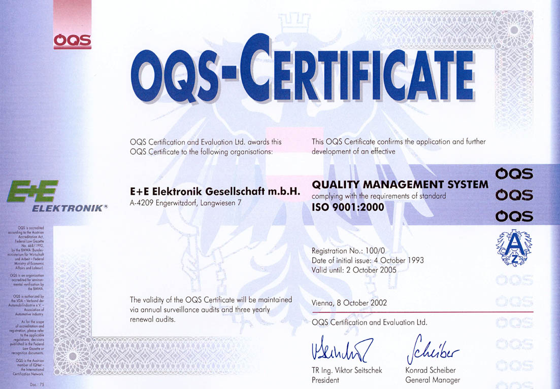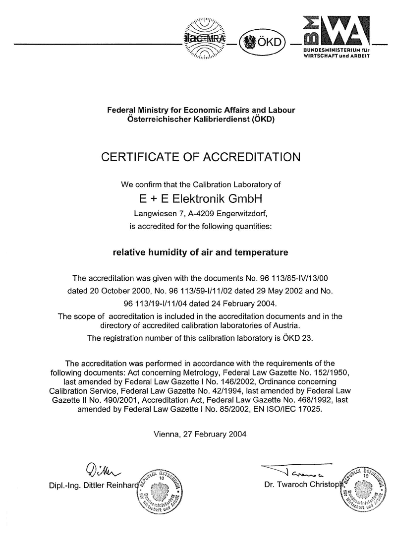 высоким стандартам качества E+E Elektronik аккредитована