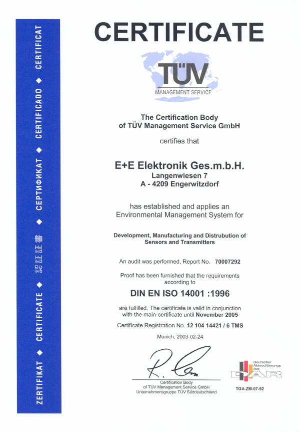 E+E в соответствии со стандартом ISO 14001 доказывает, что наряду